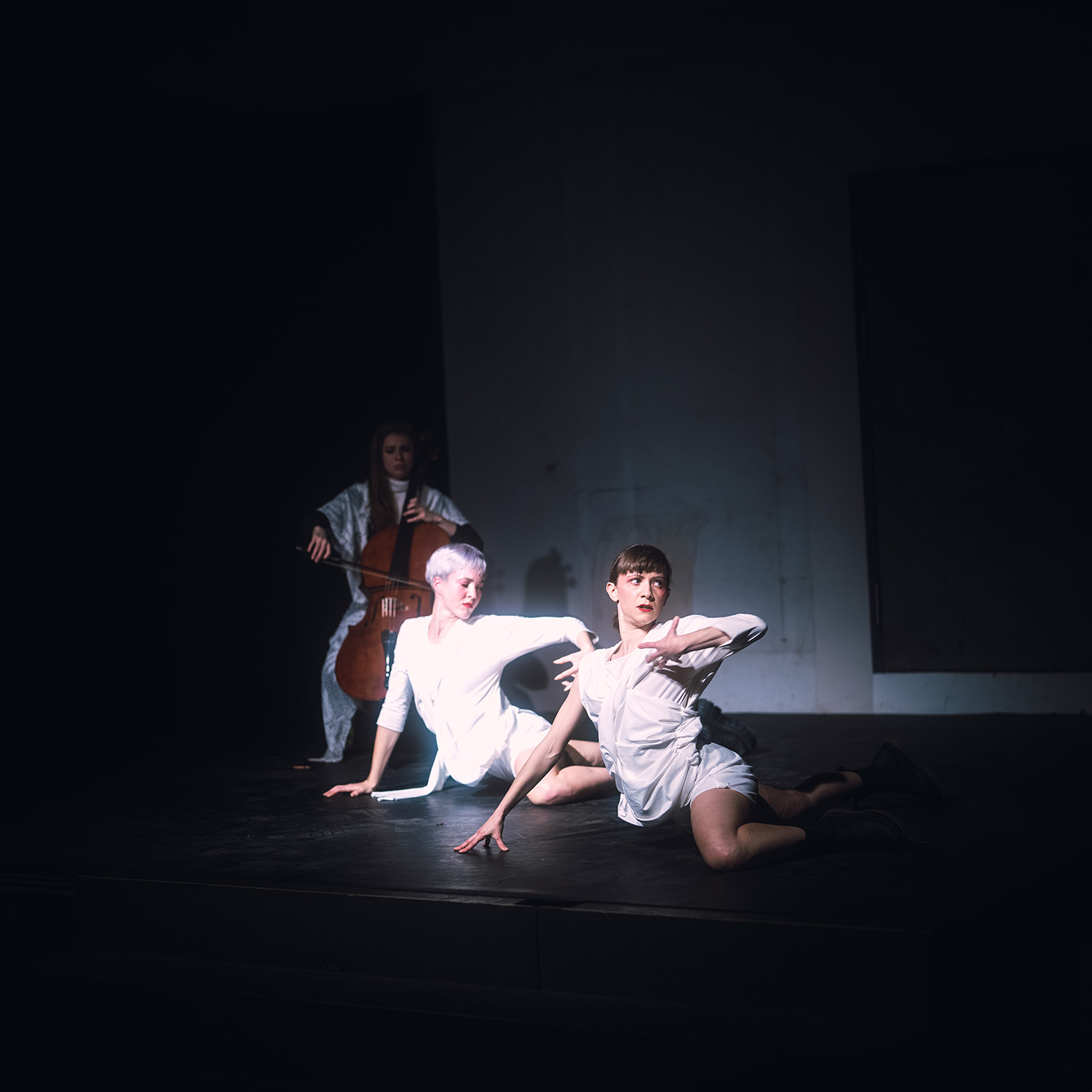 Die Performerinnen Valentina Migliorati & Marie Zechiel gemeinsam beeindrucken mit einer Interpretation zu Pablo Casals "Gesang der Vögel", gespielt von Cellistin Cicely Parnas