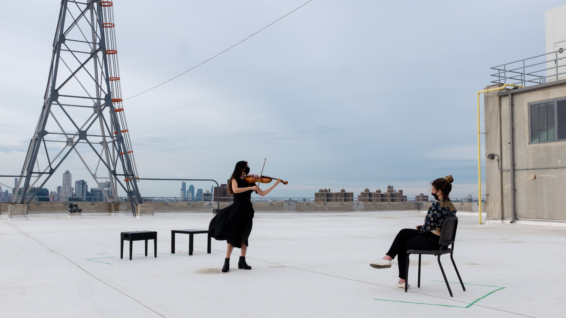 Mario Gotoh spielt Viola auf dem Dach des Building 77