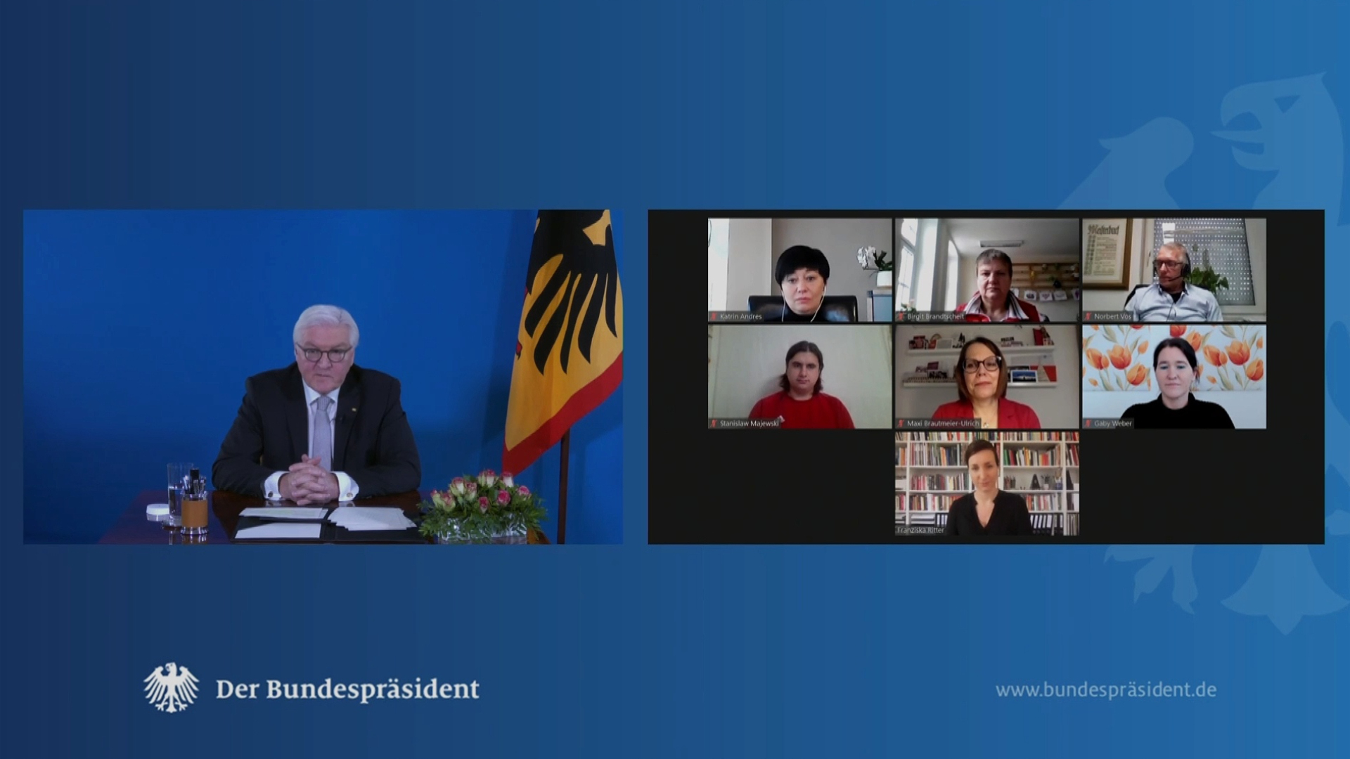 Wir freuen uns sehr über diese Wertschätzung! Unsere Gründerin Franziska Ritter wurde eingeladen, als eine von sieben ausgewählten Bürger:innen mit Bundespräsident Frank-Walter Steinmeier in seinem Online-Format zur „Bürgerlage“ in Pandemiezeiten zu sprechen.