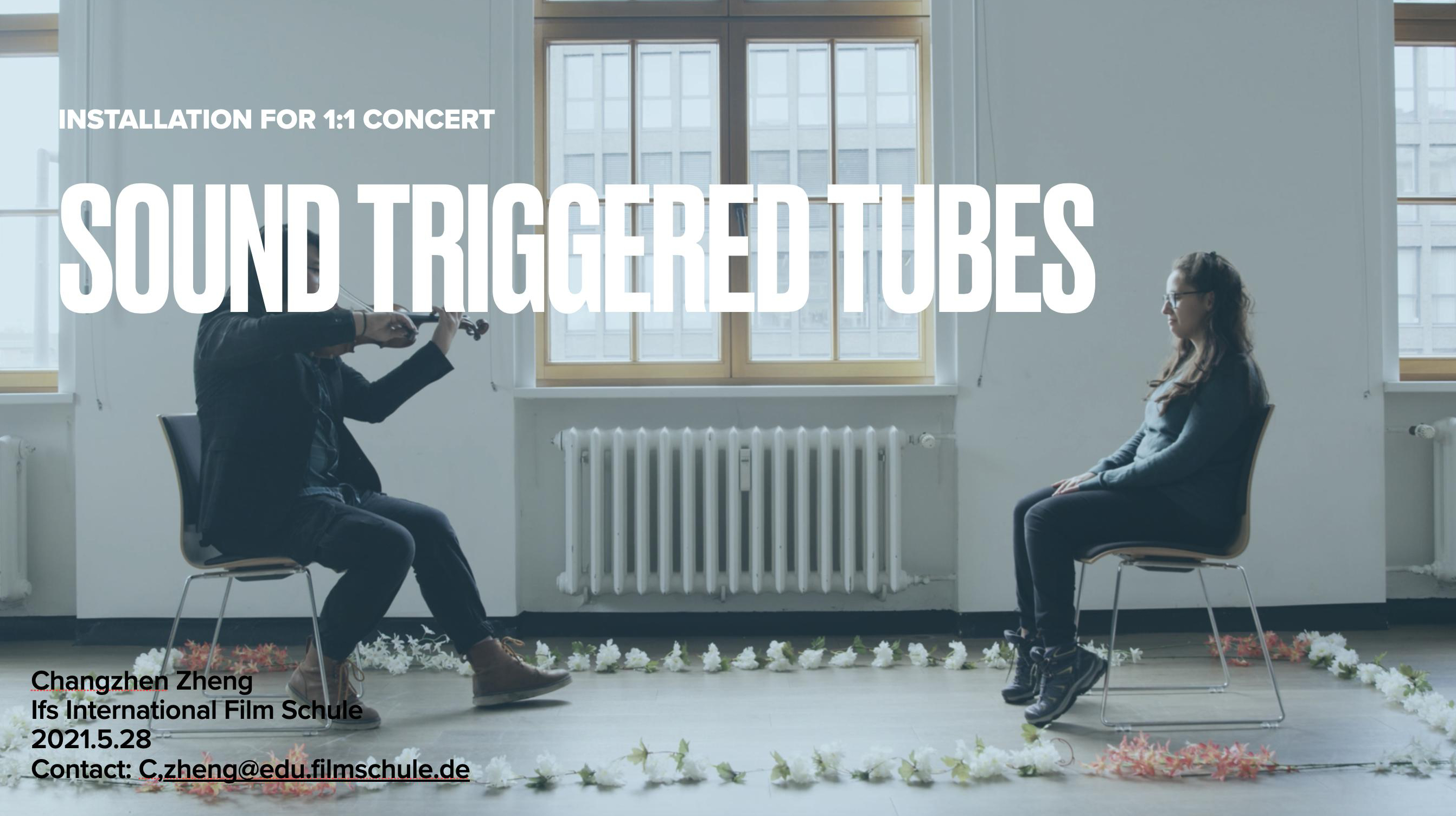 Sound Triggered Tubes ist eine interaktive Installation, die es dem Benutzer ermöglicht, verschiedene Rhythmen und Farben der LED-Röhren durch unterschiedliche Klänge und Vibrationen zu verändern. Gleichzeitig kann der Zuhörer als Betrachter eine tiefere emotionale Verbindung mit dem Musiker haben, bevor und nachdem er die interaktive Installation erlebt hat. Außerdem kann der Zuhörer seine Ohren und Augen schon vor dem Konzert vorbereiten. User Journey & Beschreibung: der Hörer betritt das Konzert durch den Moderator. Bevor er den Hauptraum betritt, befindet sich ein Flur mit abgedunkelten Fenstern. Die Lichter gehen aus, der Zuhörer wird aufgefordert, mit den Röhren zu interagieren, Geräusche und Vibrationen zu erzeugen, bevor er in den Raum geht, um das Konzert zu starten. Der Gastgeber geht, der Gast beginnt mit den Röhren zu interagieren. Das ganze Erlebnis dauert etwa 1-2 Minuten, mehrere Mikrofone umgeben den Zuhörer. Immer wenn der Zuhörer Geräusche aus bestimmten Richtungen macht, nehmen die Mikrofone den Ton auf und die Röhren reagieren auf Bewegungen oder verschiedene Farben. Schließlich gehen alle Lichter an und der Zuhörer wird eingeladen, den Raum zu betreten, wo der Musiker auf einem Stuhl wartet.