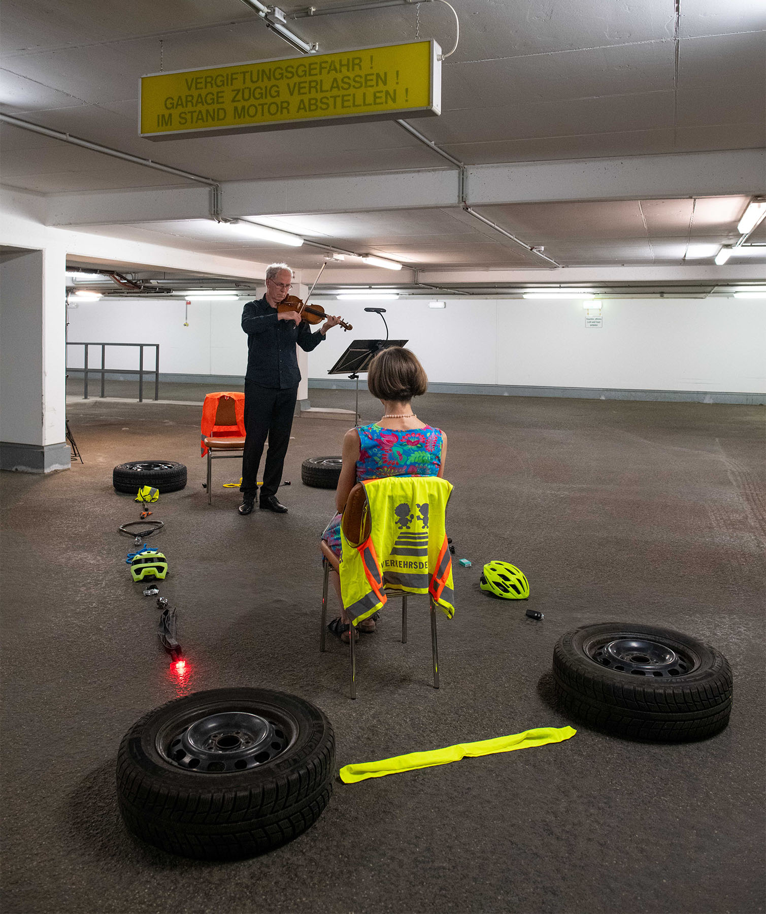 Das RIFS Forschungsinstitut für Nachhaltigkeit, das in einem ehemaligen Bankgebäude seine Büros beheimatet, ließ uns in seine Tiefgarage „einfahren”, hier spielten Violinist Thomas Kretschmer und Cellistin Jule Hinrichsen. Judith Schäfer, eine der Gastgeberinnen im RIFS, drückt ihre Begeisterung und die emotionale Wirkung der 1:1 Konzerte wie folgt aus: