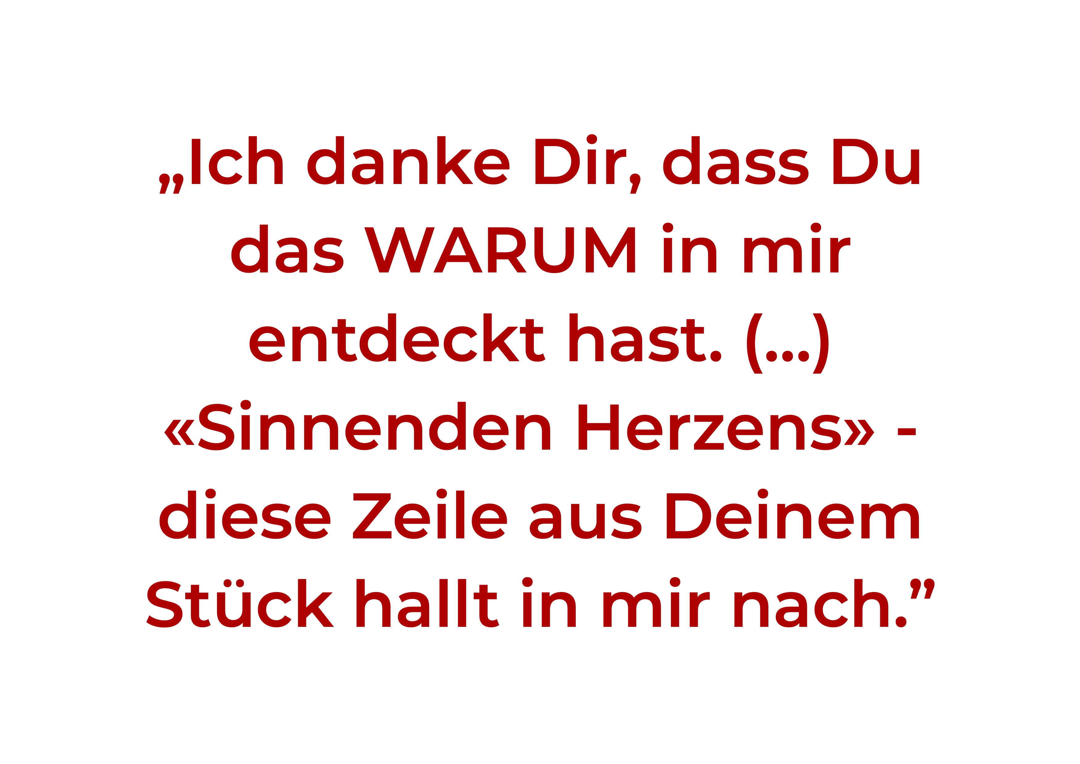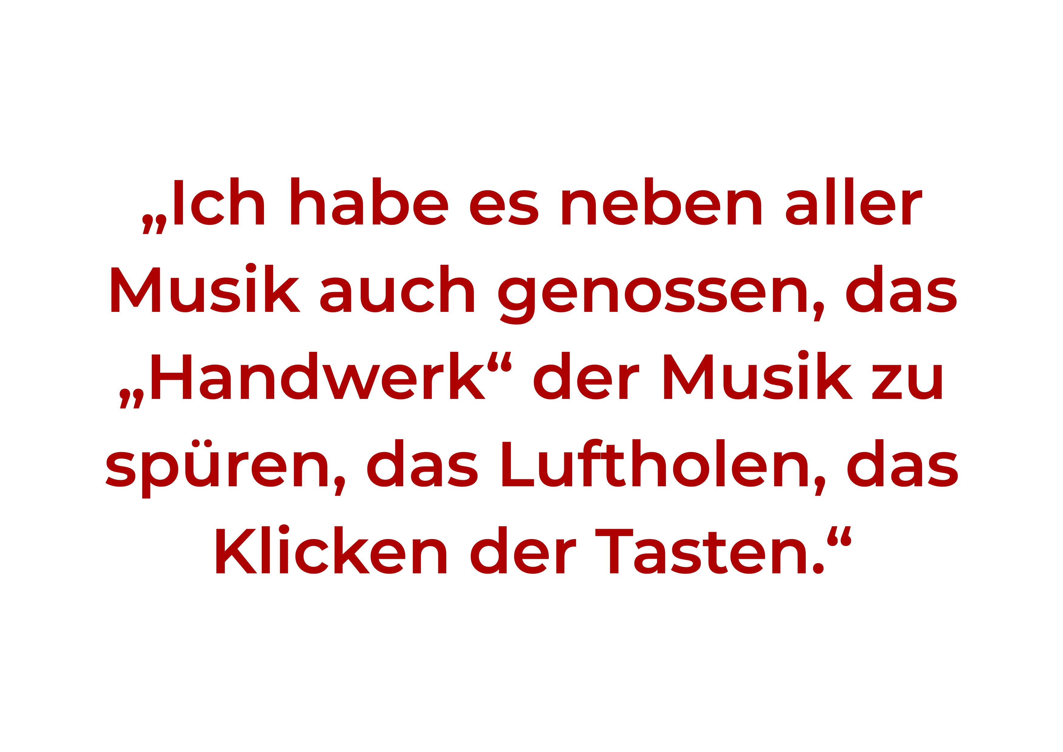 Für mich war es eine bereichernde Aufgabe, ganz unterschiedliche Menschen am Institut willkommen zu heißen und sie auf ein achtsames Erleben mit offenem Herzen einstimmen zu dürfen. Die hochemotionalen Reaktionen auf die intime Konzertsituation mitzuerleben hat mich selbst stark bewegt.