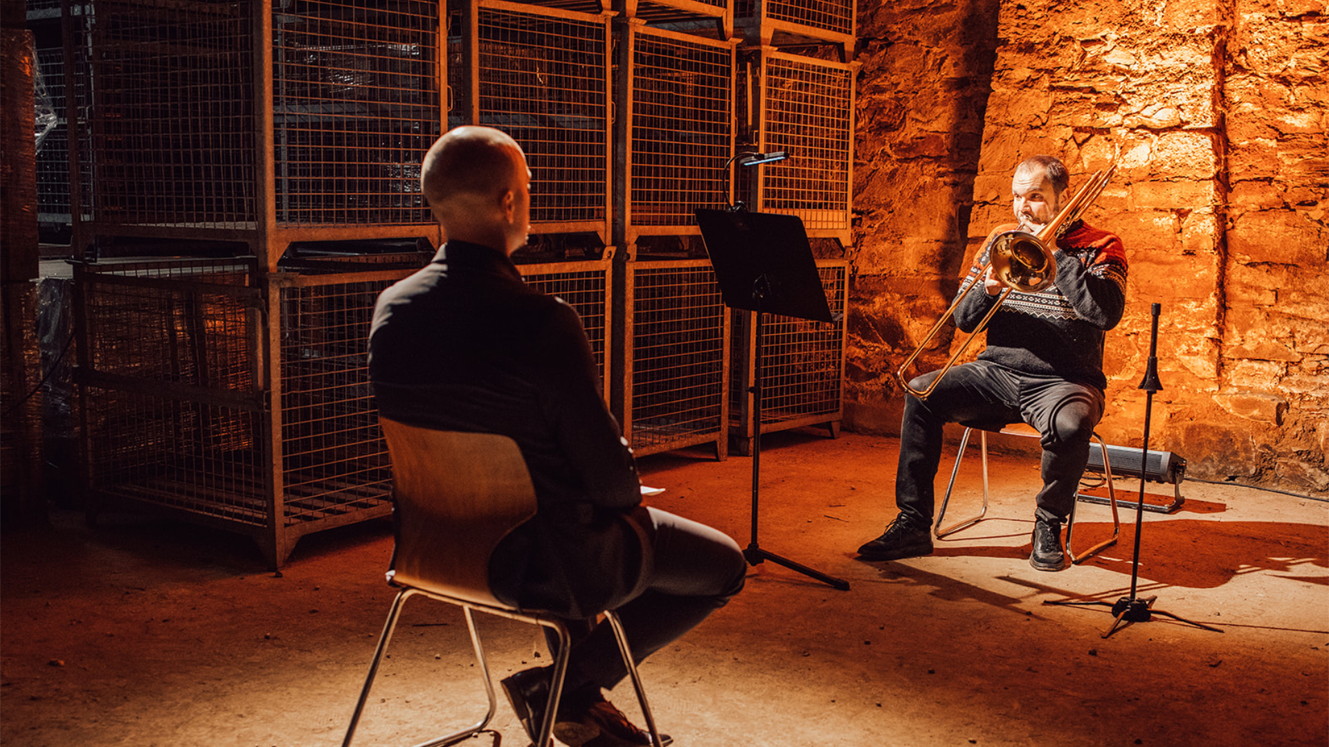 Posaunist Martin Chorell auf dem Weingut Würtzberg