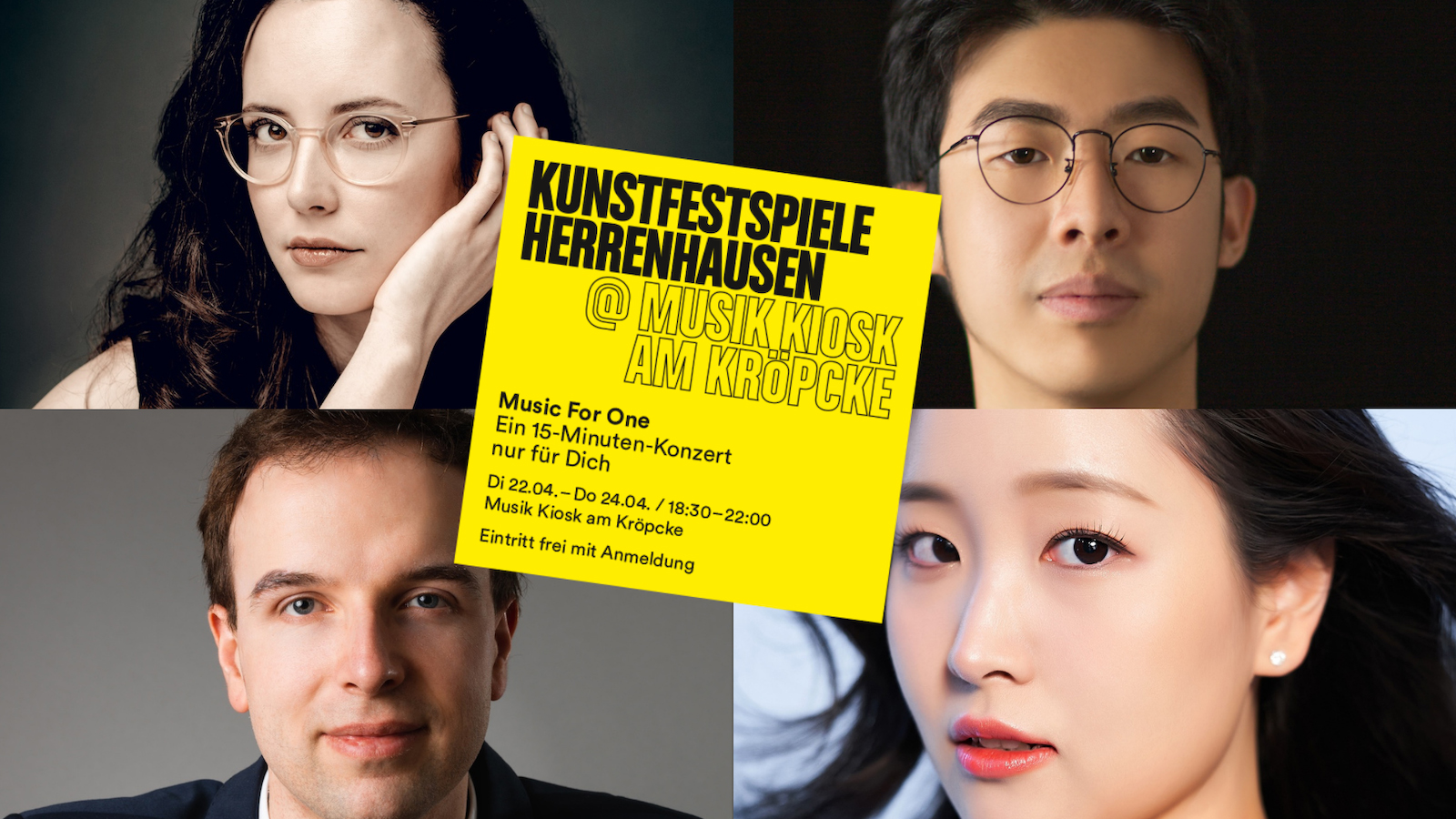 Ein Pianist*in am Klavier. Eine Zuhörer*in im Publikum: Du! Eine wunderbare Viertelstunde spielen hochkarätige Pianist*innen aus Hannover Musik nur für Dich allein. Unter dem Motto Music for One laden die KunstfestSpiele Herrenhausen gemeinsam mit dem Musik Kiosk am Kröpcke vom 22. bis 24.04.2025 zu dieser kleinen Konzertreihe in einem der kleinsten Konzertsäle Hannovers.