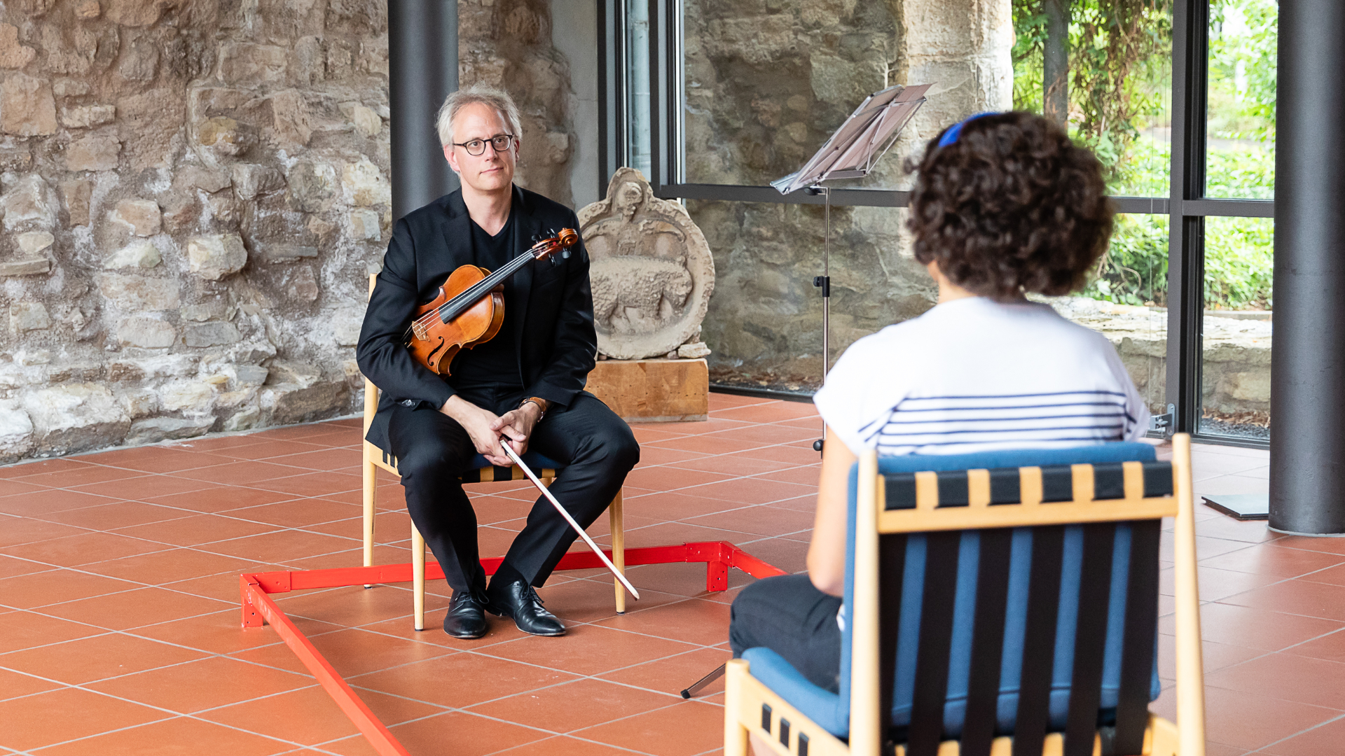Bratscher Sascha Frömbling im Kapitelsaal, Kloster Volkenroda 2021