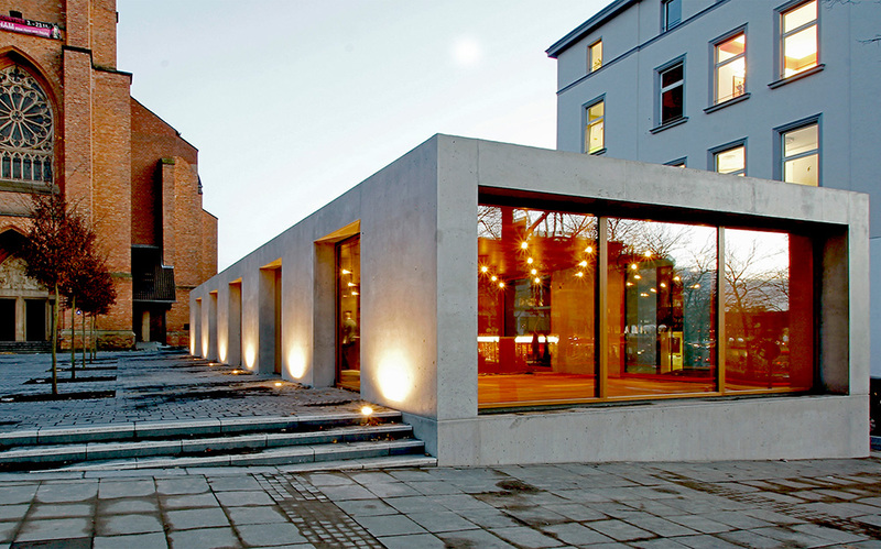 Das neue Zentrum der evangelischen Stadtkirchenarbeit in Bonn: der Kirchenpavillon am Kaiserplatz vor der Kreuzkirche