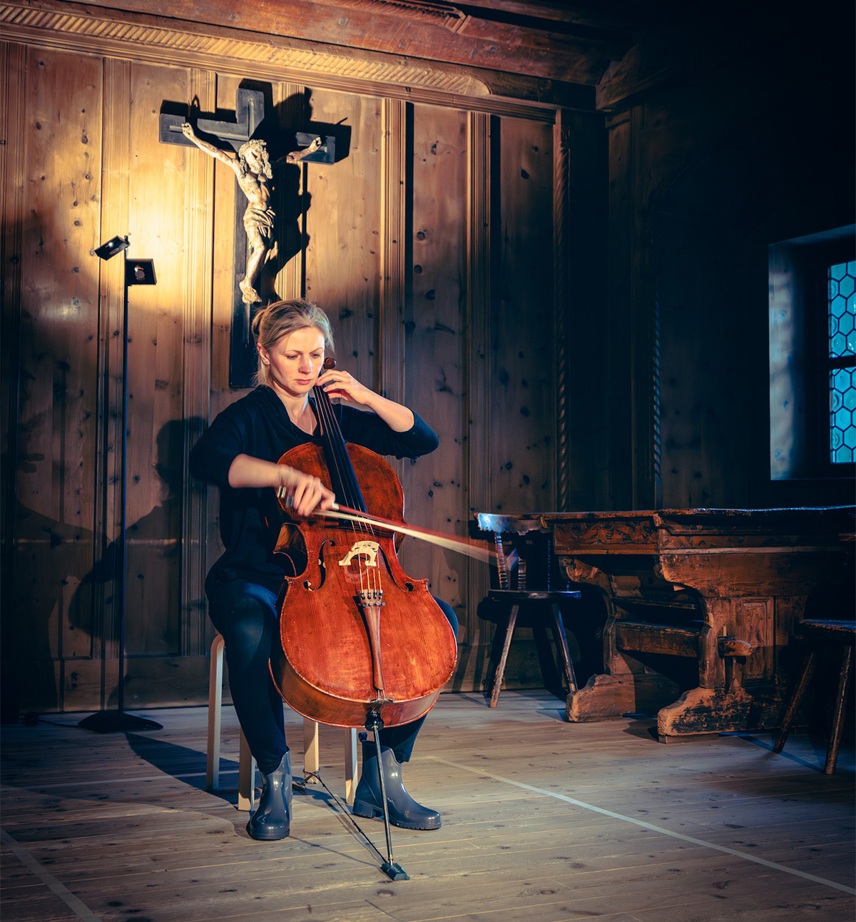 Cellistin Maria Kulowska bei einem 1:1 CONCERT im Volkunstmuseum Innsbruck